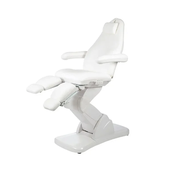Fauteuil de pédicure de haute qualité avec 5 moteurs et une structure très stable. L’hauteur des 2 jambes sont aussi réglables électriquement et sont écartables à 90°. Les bras sont rabattables et le coussin est amovible. Les boutonnières intégrées dans le dossier, le respose pied et le siège. Revêtement sans soudure!
