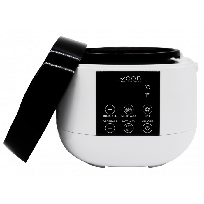LYCON présente le chauffe-cire numérique ! Le mini chauffe-cire rond est compact et idéal et a une capacité suffisante pour épiler le visage et les aisselles ! Design branché, disponible en blanc avec des détails noirs. Pratique : la température est auto-ajustable et déjà réglée pour la cire chaude en appuyant sur un seul bouton !