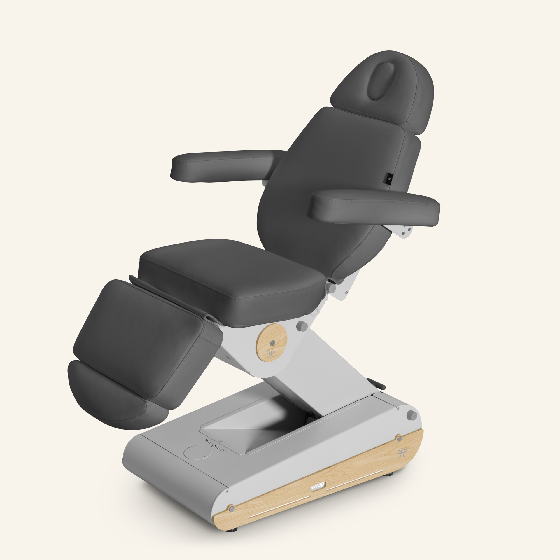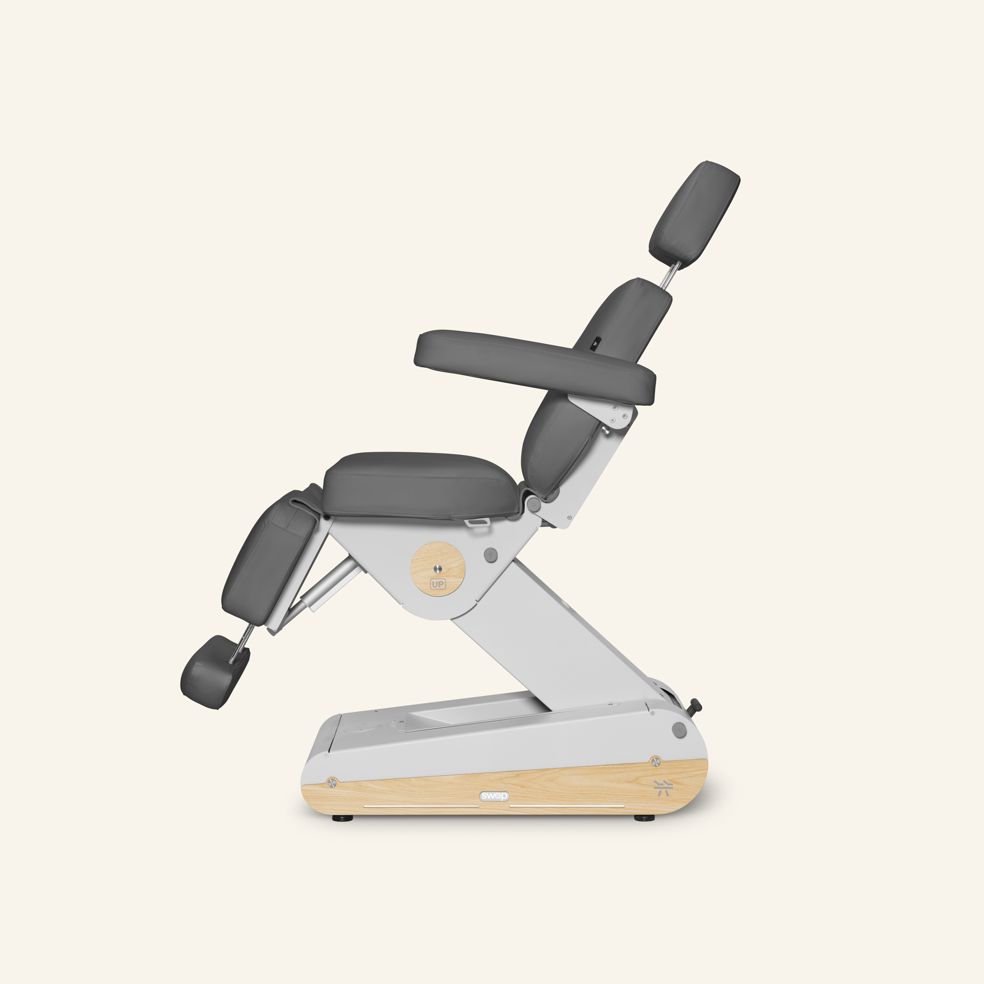 Le Swop B4 UP est un fauteuil de beauté équipé de 4 moteurs, d’un chauffage, d’une fonction de remise à zéro et de fonctions de mémoire (3 positions de mémoire). Le fauteuil est doté d’une base solide et stable (avec roulettes intégrées) et d’un rembourrage confortable. Les 4 moteurs permettent de régler facilement le dossier, le repose-pieds, la hauteur et l’inclinaison dans la position souhaitée à l’aide de la commande manuelle (incluse). Les parties de l’appui-tête et du repose-pieds peuvent être réglées en longueur afin d’obtenir un confort maximal pour le client. Les accoudoirs peuvent être repliés. Ils peuvent également être détachés.