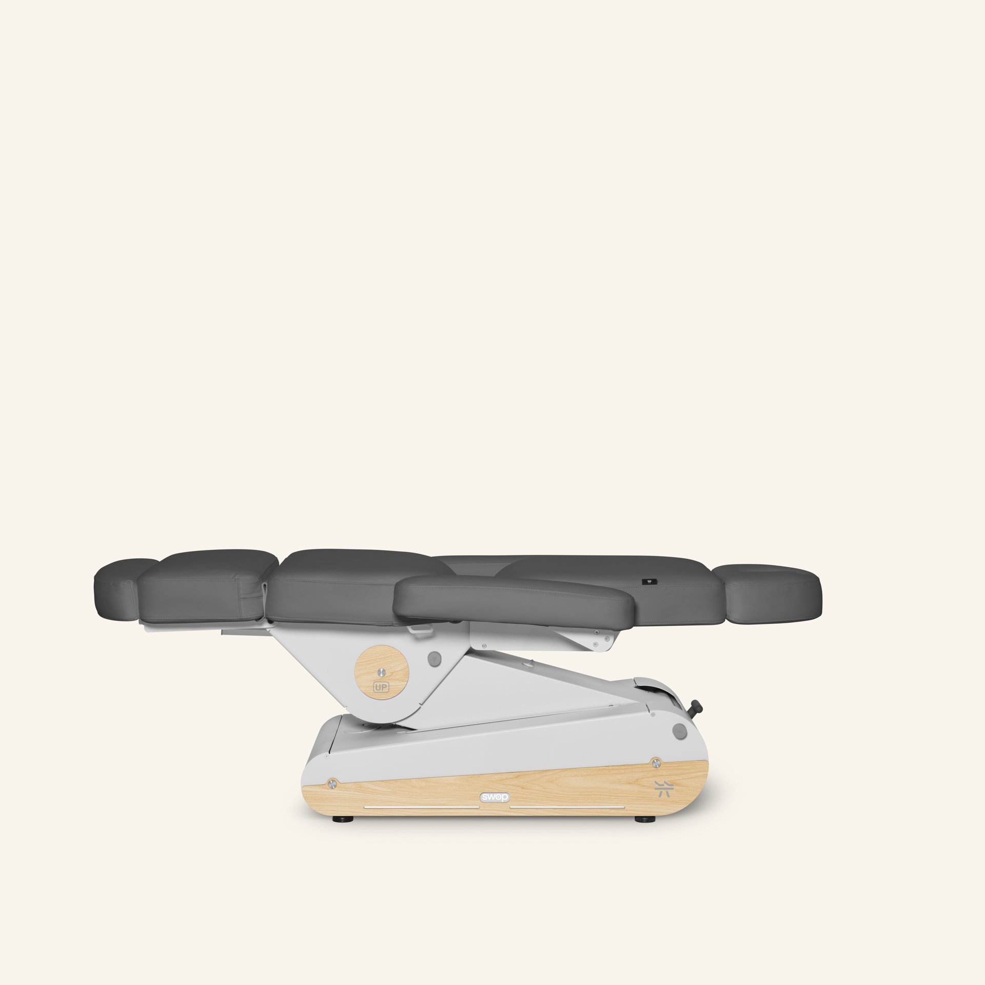 Ce fauteuil de traitement Swop est équipé d’un chauffage (réglable en 2 positions), d’une lumière LED blanche sur la base, de 3 positions de mémoire, d’une remise à zéro et d’un système à 4 roues pouvant être tournées à 360º et verrouillées et déverrouillées à l’aide d’un levier pour déplacer le fauteuil facilement et sans effort là où vous le souhaitez. La résistance à l’abrasion du cuir artificiel est de 400K et protège contre les bactéries et les rayons UV. Vous pouvez encore améliorer le fauteuil avec la lumière Cromo Mood Led. (différentes couleurs possibles) et d’un système audio en bambou (petit boîtier intégré dans le banc) qui vous permettra de diffuser de la musique relaxante pendant que vous dorlotez vos clients. Livré en standard avec des panneaux en bois clair.
