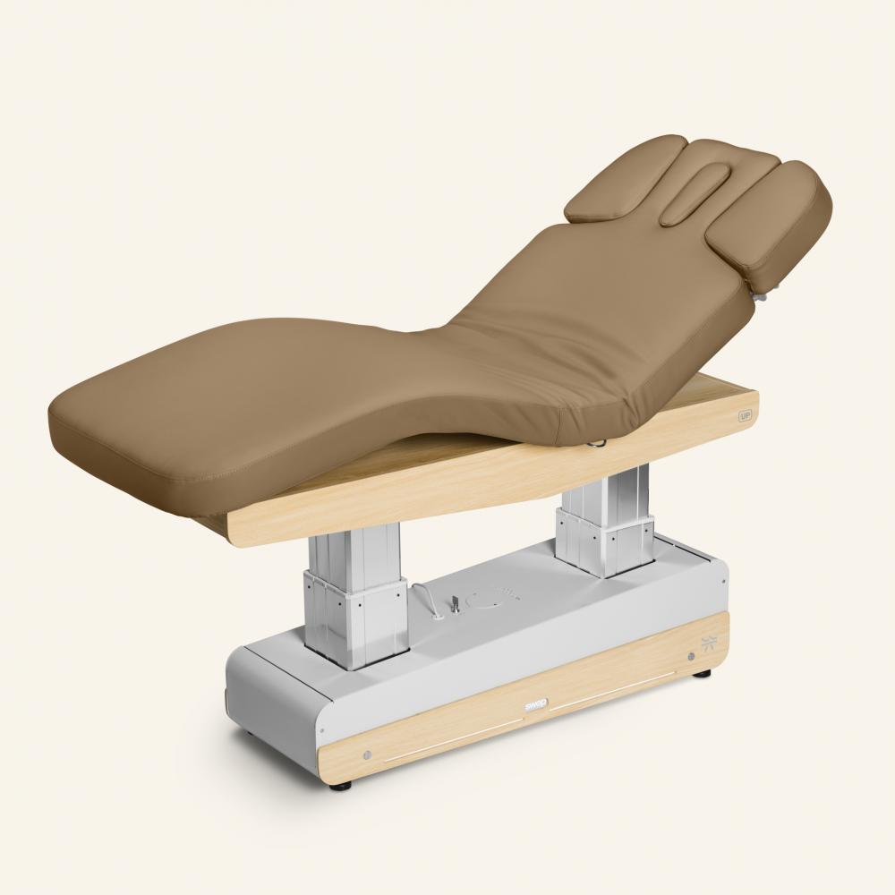 Le Swop S4 up est un canapé électrique doté d’un matelas souple avec 2 accoudoirs, d’un chauffage et d’un logement très stable sur 2 piliers. En outre, le canapé est équipé de roues intégrées qui peuvent être positionnées et verrouillées à l’aide d’un levier. Le canapé est équipé de 4 moteurs pour régler la hauteur, le dossier, le repose-jambes et l’inclinaison. En outre, la commande comporte 3 positions de mémoire et un bouton de réinitialisation. La résistance à l’usure du cuir artificiel n’est pas inférieure à 250K et protège contre les bactéries et les rayons UV. Ce canapé est équipé de série d’un porte-rouleau de papier, d’un éclairage LED blanc sur le piètement, d’accoudoirs à double élévation et de roulettes intégrées. Vous pouvez l’étendre avec le Cromo Mood Led light. (différentes couleurs possibles) ainsi qu’un système audio en bambou (petit boîtier intégré dans le banc) qui vous permet de diffuser une musique relaxante pendant que vous dorlotez vos clients. Fourni avec des panneaux en bois clair en standard. En outre, vous pouvez habiller le fauteuil à votre goût en choisissant les panneaux que vous souhaitez pour la base.