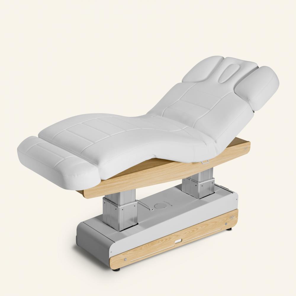 Le Swop S4 up Grand Relax est un canapé électrique à 4 sections doté d’un matelas large et moelleux avec 2 accoudoirs, d’un chauffage et d’un logement très stable sur 2 piliers. En outre, le canapé est équipé de roulettes intégrées qui peuvent être positionnées et verrouillées à l’aide d’un levier. Le canapé est équipé de 4 moteurs permettant de régler la hauteur, le dossier, le repose-jambes et l’inclinaison. En outre, la commande comporte 3 positions de mémoire et un bouton de réinitialisation. La résistance à l’usure du cuir artificiel n’est pas inférieure à 400K et protège contre les bactéries et les rayons UV. Ce canapé est équipé de série d’un porte-rouleau de papier, d’un éclairage LED blanc sur le piètement, d’accoudoirs à double élévation et de roulettes intégrées. La table est également équipée d’une rallonge de jambe qui peut également être retirée. Vous pouvez étendre la table avec le Cromo Mood Led light. (différentes couleurs possibles) et d’un système audio en bambou (petit boîtier intégré dans le banc) avec lequel vous pouvez diffuser de la musique relaxante pendant que vous dorlotez vos clients. Fourni avec des panneaux en bois clair en standard. En outre, vous pouvez habiller le fauteuil à votre goût en choisissant les panneaux que vous souhaitez pour la base.