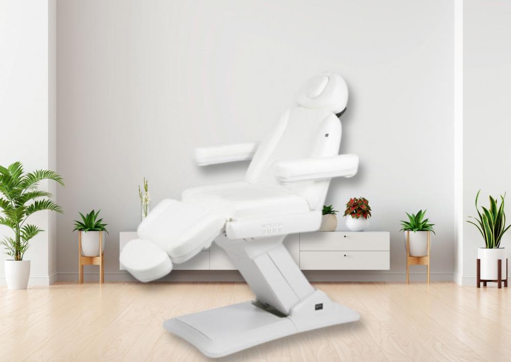 Fauteuil très confortable, équipé de 4 moteurs. Accoudoirs rabattables et repose-tête réglable. Les boutonnières intégrées dans le dossier, le repose-pied et le siège permettent un contrôle total des mouvements. Le siège est doté d’un bouton de réinitialisation qui permet de le remettre en position d’embarquement par simple pression sur un bouton. Revêtement en PU blanc d’haute qualité et facile à nettoyer.