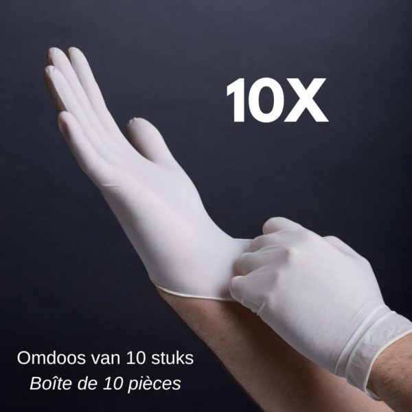 10x Latex poedervrije handschoenen Grip, wit, maat XS, doos van 100 stuks