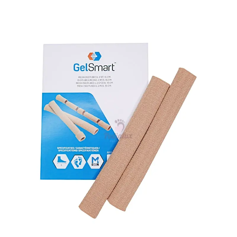 Deze stoffen buisjes, die versterkt zijn met een gelcoating, zijn volledig gevoerd met gel. Ze helpen druk en wrijving te absorberen om pijn die wordt veroorzaakt door likdoorns, eelt, ingegroeide nagels en blaren te verlichten. De elastische mouw rekt uit om op de meeste vingers/tenen te passen en kan worden bijgesneden voor een goede pasvorm. De gel geeft langzaam minerale olie vrij, die de huid verzacht en hydrateert.