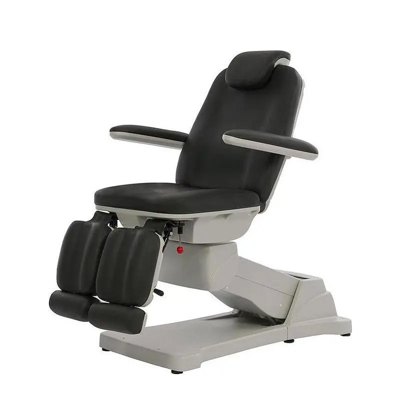 Hoogwaardige pedicurezetel uitgerust met 3 motoren voor de hoogte, het rugdeel en de kanteling. Verstelbare armleuningen en hoofdsteunkussentje in meerdere vaste posities te zetten. Beendelen draaibaar in vaste posities tot 90° en zijn onafhankelijk van elkaar in hoogte verstelbaar door middel van een gasveert. PU bekleding van hoge kwaliteit voor eenvoudige reiniging. Inclusief handbediening.