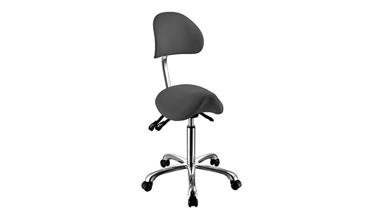 Comfortabele en elegante tabouret met hoge rug voor extra steun. De ponyzit, verstelbare rug en zitting zorgen samen met de verhoogde rug voor een uiterst ergonomische stoel.